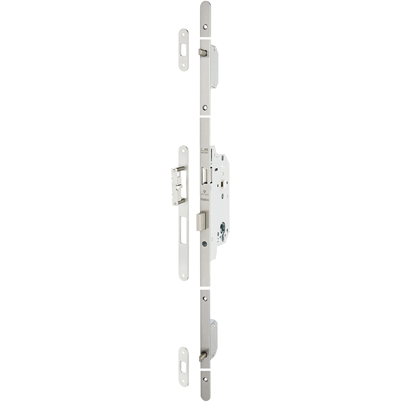Mehrpunktverriegelung MSL PolyBlock 1855, mit Magnetfalle, Elementgeprüft WK3, umstellbar von schlüssel- auf drückerbedient, mit Rundstulp 18/20 x 1788 mm Edelstahl matt