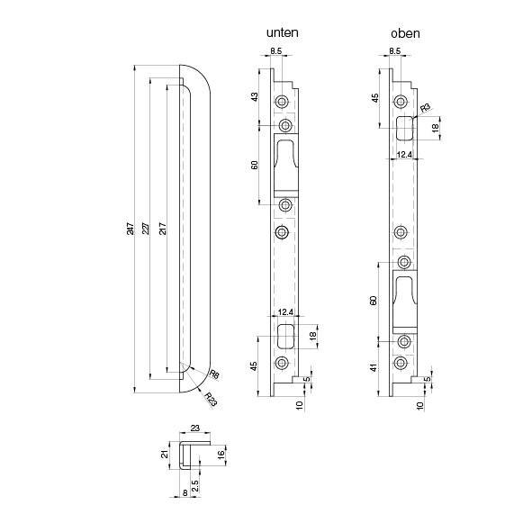 Edelstahl matt, mit Ausschnitt für Verriegelungsbolzen und Rollzapfen, ohne Schrauben