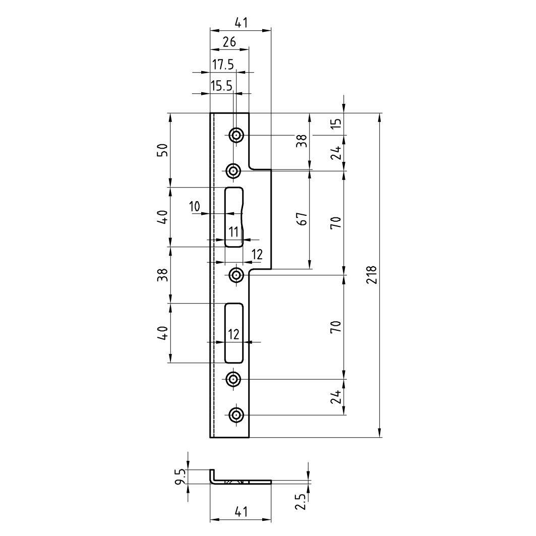 Edelstahl matt, eckig, mit Ausschnitt für Riegel und Falle, ohne Schrauben