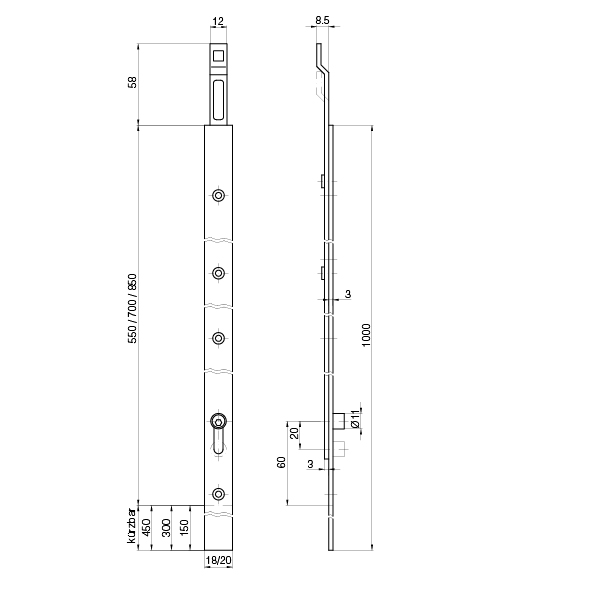 Edelstahl matt, Rollstulp eckig, mit verstellbarem Rollzapfen, für Mehrpunktverriegelung MSL 1857 H