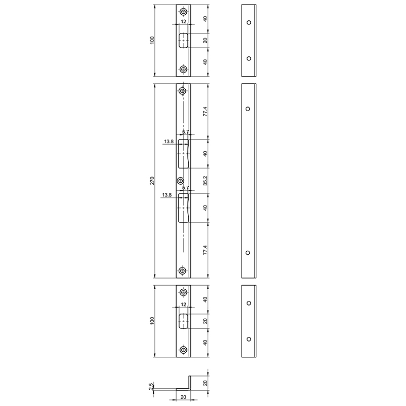 1x Hauptschliessblech 270 x 20/20 x 2,5 mm