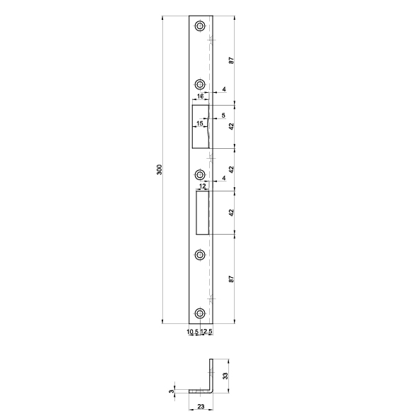 Stahl verzinkt, mit Ausschnitt für Riegel und Falle, ohne Schrauben