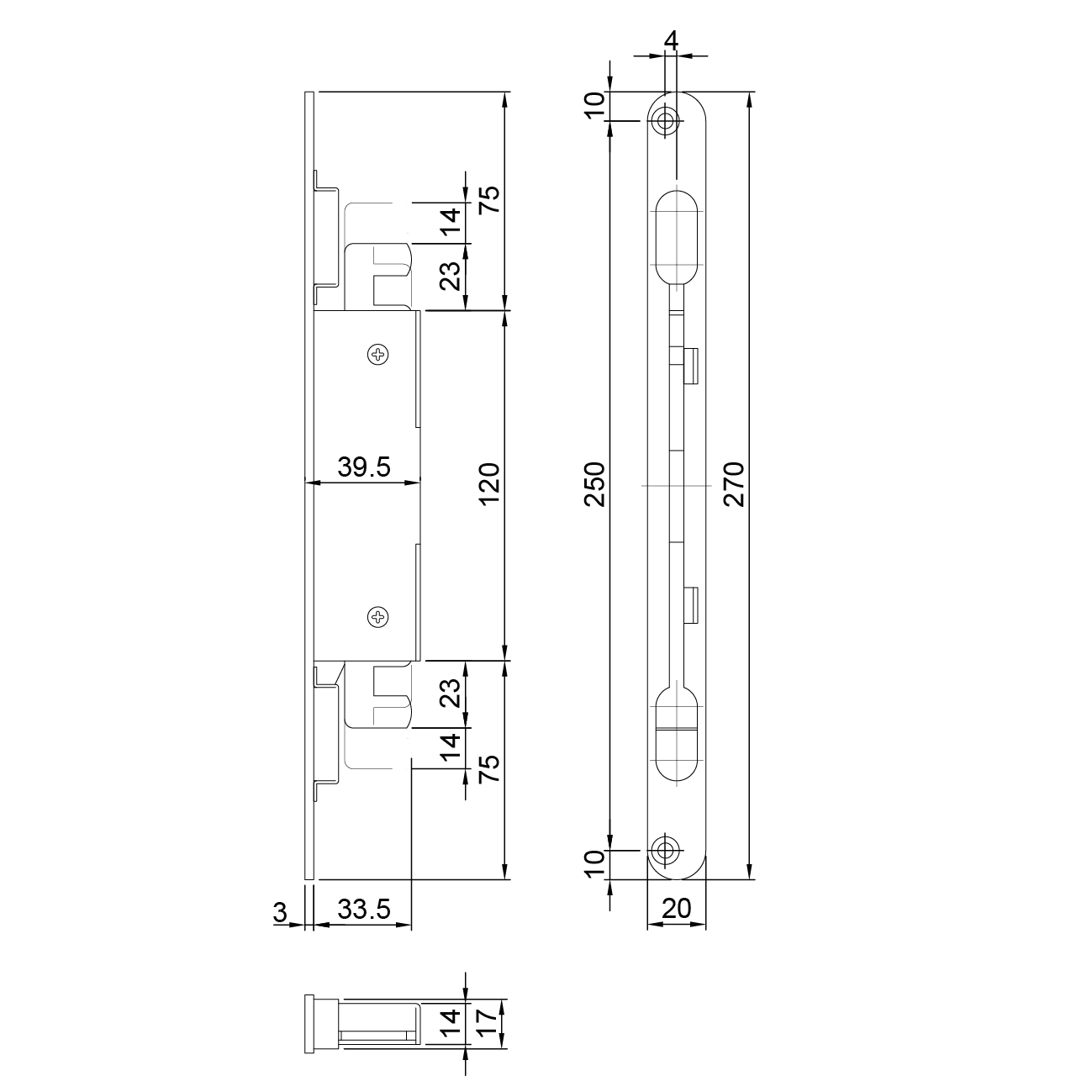 Stahl verzinkt, Kniehebel Messing, Stulp 20 x 270 mm abgerundet, für Standflügelverriegelung bei 2-flügligen Türen, ohne Zubehör