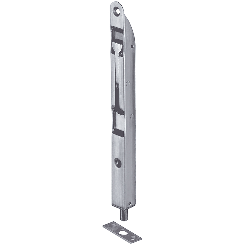 Edelstahl matt, abgerundet, mit Kniehebel, Riegel-Ø 7,5 mm, Hub 16 mm, mit flachem Schliessblech 39 x 15 mm
