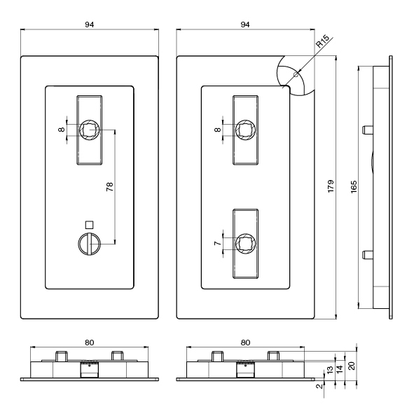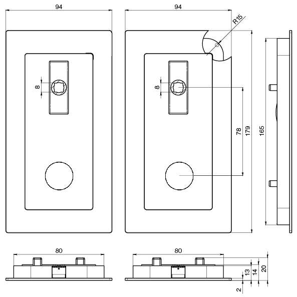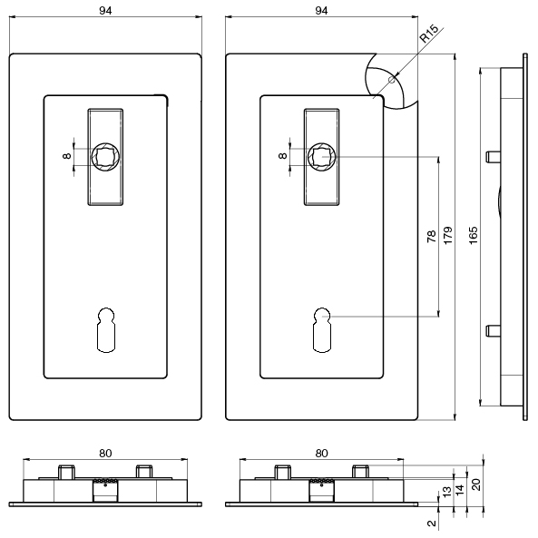 Einlassgrösse: 80 x 165 mm