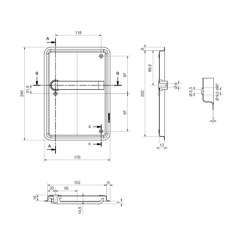 Einlassmasse: Breite x Höhe x Tiefe (152 x 222 x 13 mm)