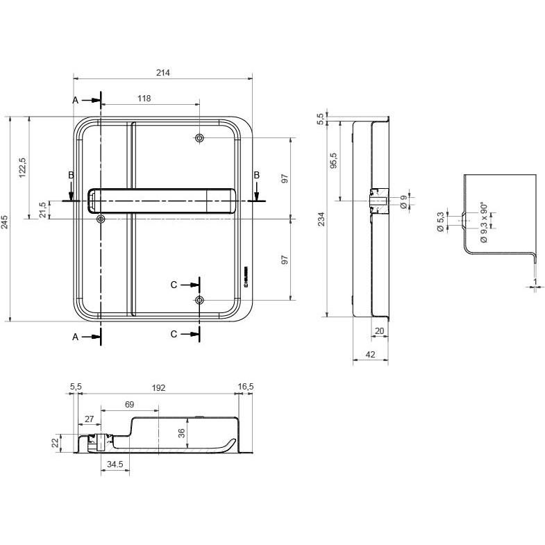 Einlassmasse: Breite x Höhe x Tiefe (192 x 234 x 42 mm)