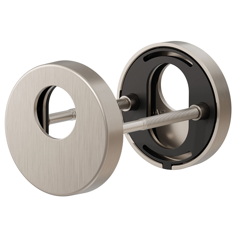 Messing matt vernickelt, Unterkonstruktion in Zink matt vernickelt mit Kunststoff-Clips, passend zu Drückerrosette 34.260 mit Rückholfeder, ohne Schrauben