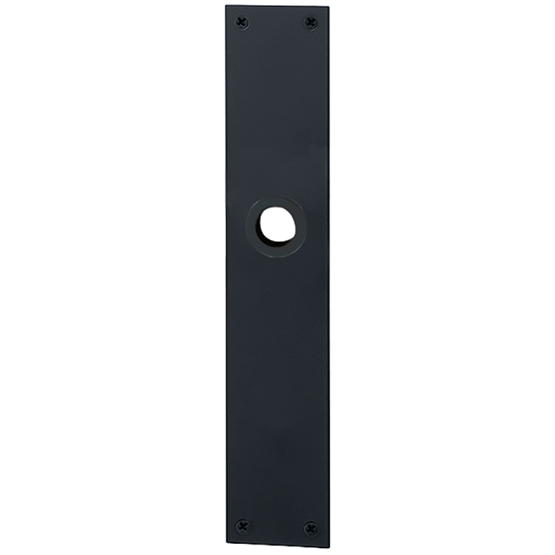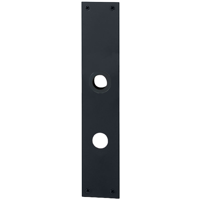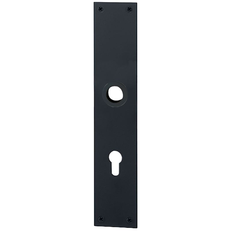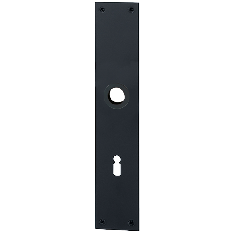 Aluminium, velours black, Drückerführung 18 mm, oberes Schraubenloch bis Mitte Drückerführung 82 mm, mit Schrauben