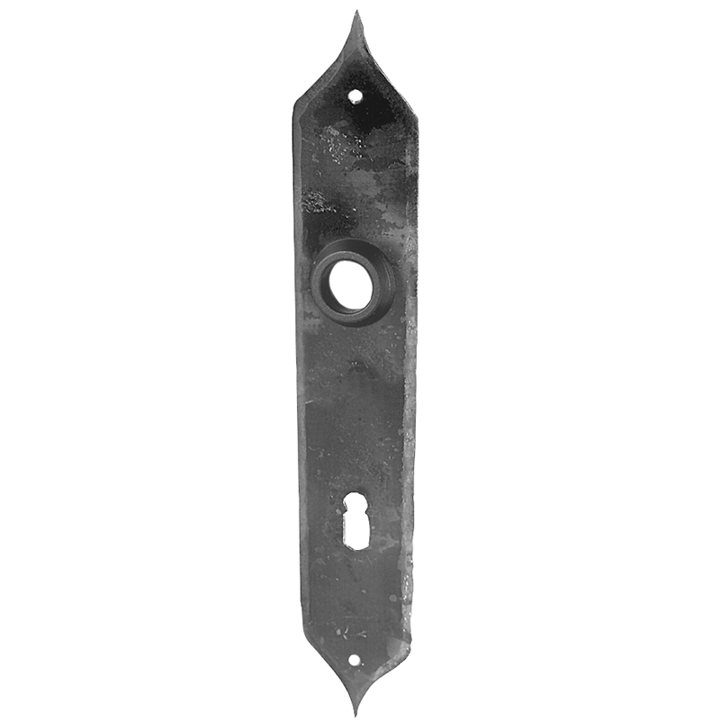 Eisen naturblank (geringe Korrosionsbeständigkeit), Distanz Drückerloch - oberes Schraubenloch 62 mm, Schrauben im Lieferumfang enthalten