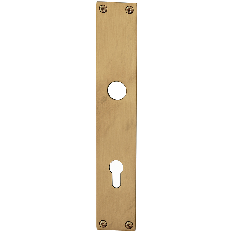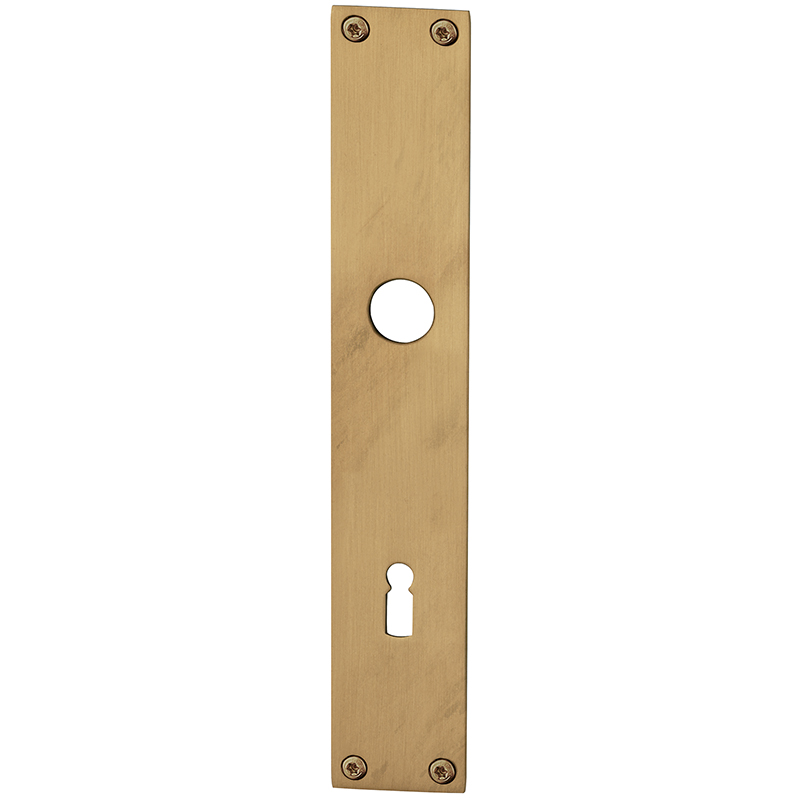 Messing "Vintage" / mit natürlicher Patina (unbehandelt), Drückerführung 16 mm, oberes Schraubenloch bis Mitte Drückerführung 81 mm, mit Schrauben