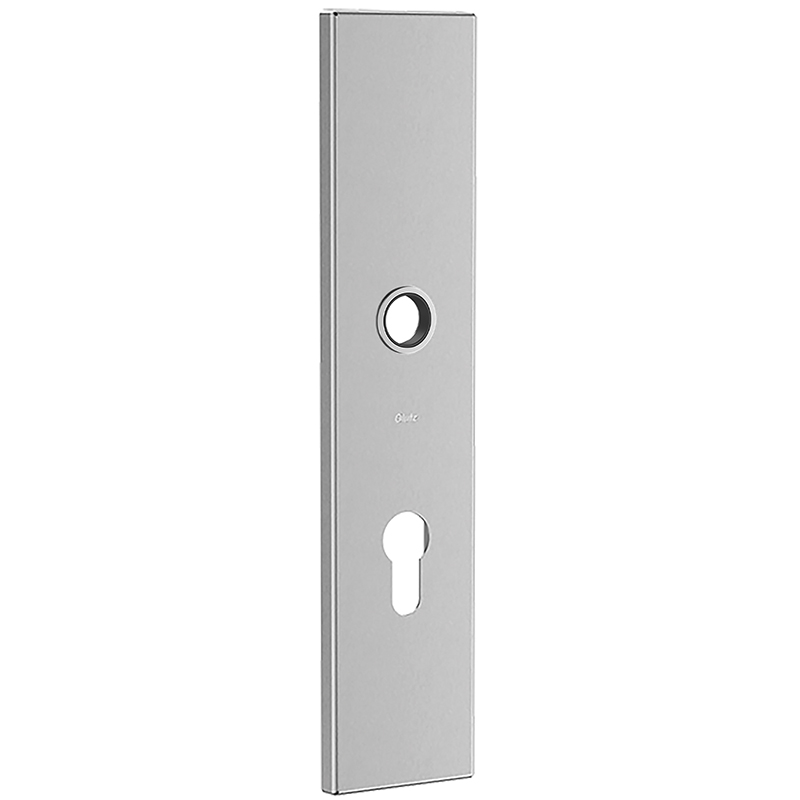 Oberfläche Edelstahl matt, mit 3 Gewindenocken, für paarweise Verschraubung mit Innenschild 58610, Langschild ist geeignet für grosse, schwere sowie stark frequentierte Türen mit Türschliesser, durch massive Grundplatte und durchgehende Verschraubung bietet es eine besonders hohe Stabilität bei Türen, wo ein geteilter Vierkant für Panikschlösser eingesetzt wird, kombinierbar mit allen Glutz Drücker mit Hals-Ø 18 - 22 mm oder mit Oval-Stanzung für Knopffestmontage, geprüft nach EN 1634 und EN 1906, ohne Schraubenset