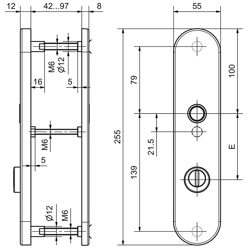 - ZA: Schlüssellochung mit Ausschnitt für Zylinderabdeckung.