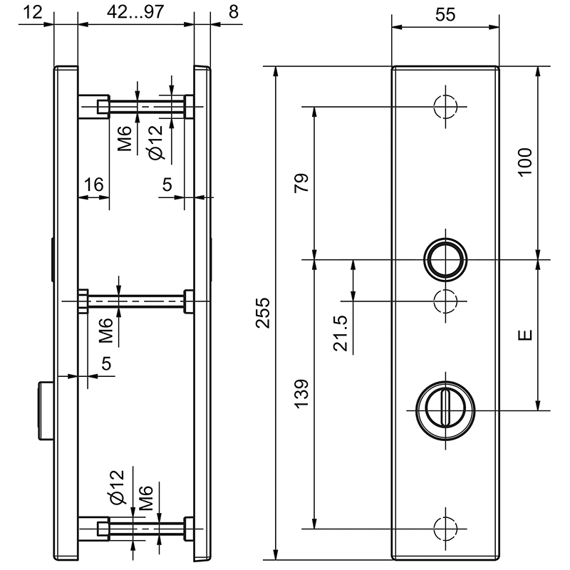 - ZA: Schlüssellochung mit Ausschnitt für Zylinderabdeckung.