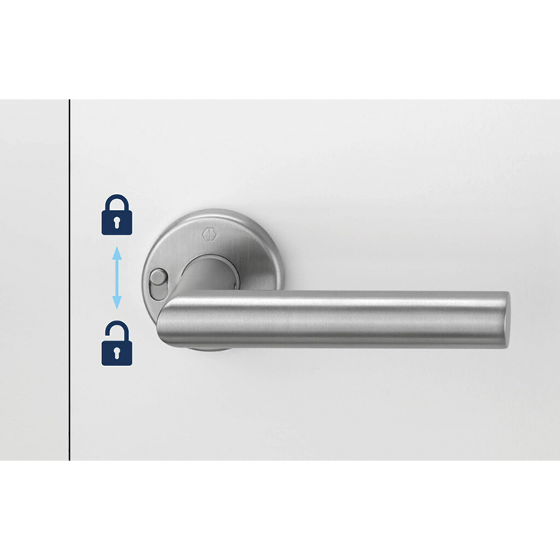 MiniLock: ist eine dezente Verriegelungslösung von HOPPE für Innentüren ohne Schlüsselloch. Die Verriegelung ist unauffällig in der Griffrosette integriert und wird über einen kleinen Schiebeknopf bedient. Die Montage ist einfach und schnell, ohne besondere Türvorbereitung. MiniLock ist in vielen HOPPE-Serien und Designs erhältlich, z. B. Amsterdam, Hamburg und Macau.