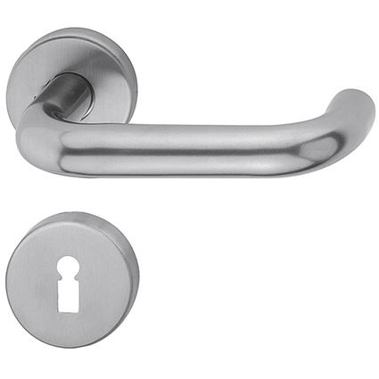 Edelstahl matt, Drückerführung aus Messing, für den Einsatz bei Zimmertüren mit einer geringen Benutzungshäufigkeit im Wohnungsbau
