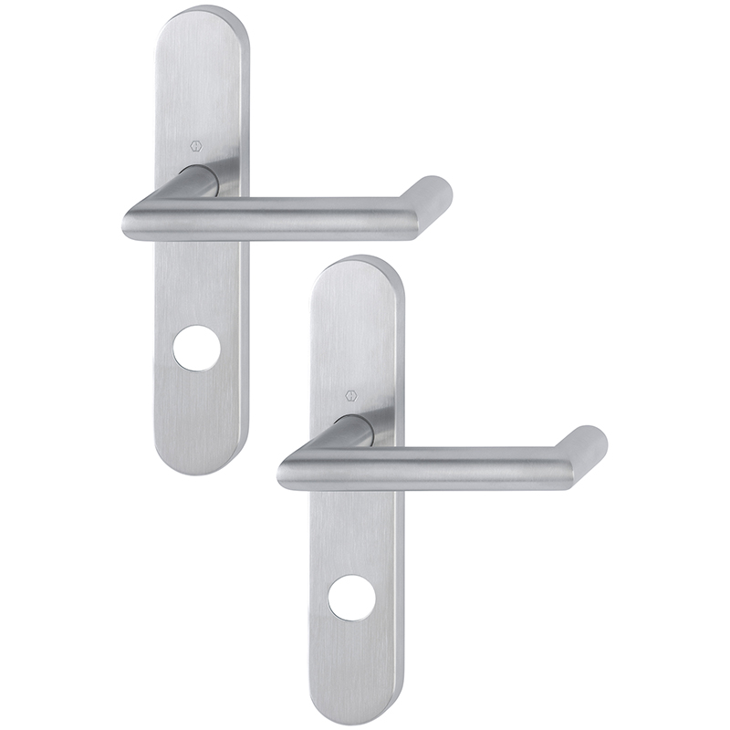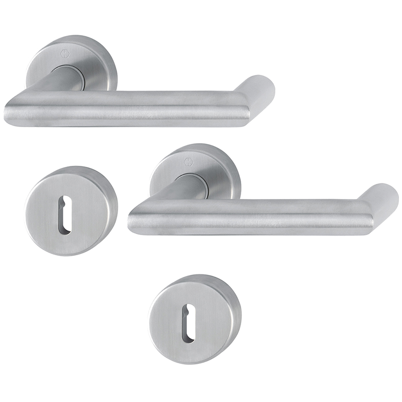 Edelstahl matt, geprüft nach DIN 1827, Verbindung: HOPPE-Profilvollstift (Loch- / Lochteil), Bund: für Lagerung fest / drehbar, HOPPE-Steckgriff-Verbindung mit Kugel-Arretierung Sertos®
