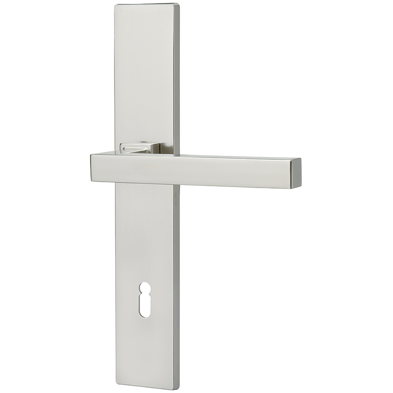 Zink geschliffen, matt vernickelt, Langschild zum Aufclipsen auf Befestigungsplatte, geprüft für Benutzerkategorie Klasse 4 nach EN 1906, geeignet für den Einbau an Feuer- und Rauchschutztüren nach EN 1906