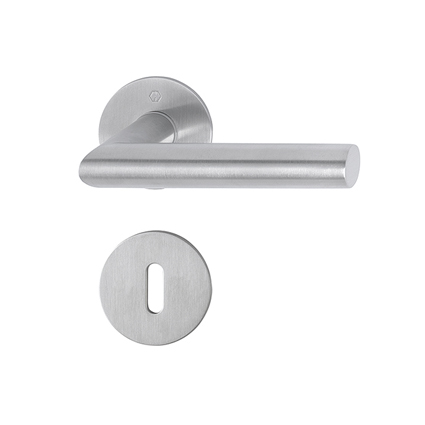 Edelstahl matt, Rückholfedern rechts / links verwendbar, mit Schnellstift plus-Verbindung, für schraubenlose Montage, Rosetten mit durchgehenden Stütznocken, geprüft für Benutzerkategorie Klasse 3 nach EN 1906