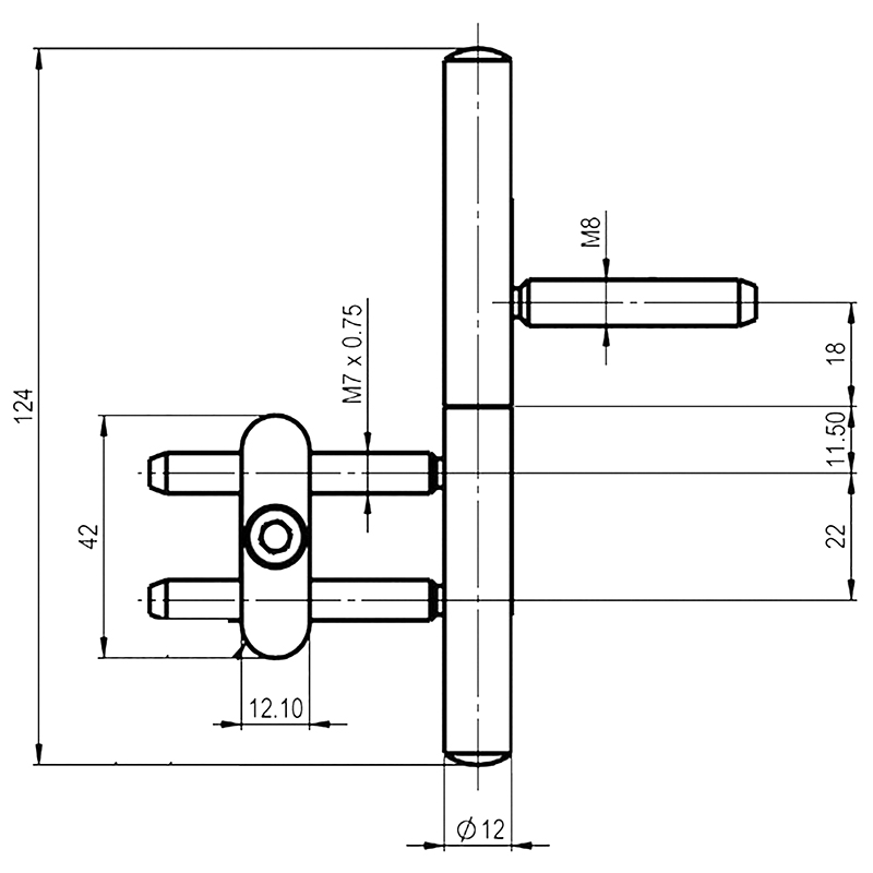 - 1 Scharnierdorn komplett mit 2 Bolzen M7 angeschweisst,