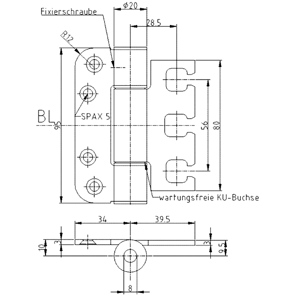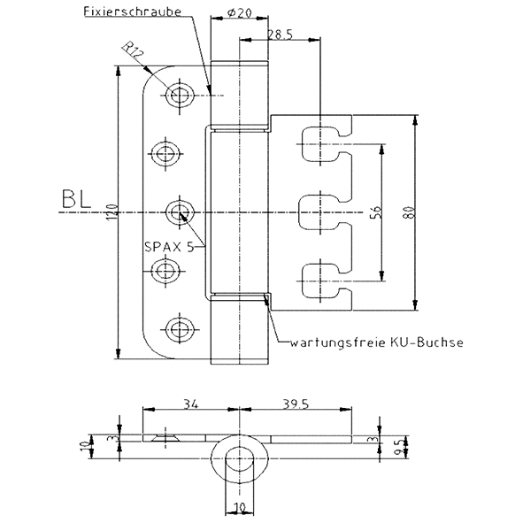Edelstahl gebürstet, für stumpf einschlagende und gefälzte flächenbündig einschlagende Türen mit geringer Falztiefe, wartungsfrei, mit Stiftsicherung, eingebaut demontierbar, Lappendicke 3 mm, Anschlagluft 13,5 mm, ab Höhe 100 mm: zur Verwendung an Türen in Flucht- und Rettungswegen mit Anforderungen an den Rauch- und Brandschutz, Tragkraft, Lappenhöhe 95 mm, bei 2 Band ca. 80 Kilo, Tragkraft, Lappenhöhe 120 mm, bei 2 Band ca. 100 Kilo, Tragkraft, Lappenhöhe 160 mm, bei 2 Band ca. 120 Kilo