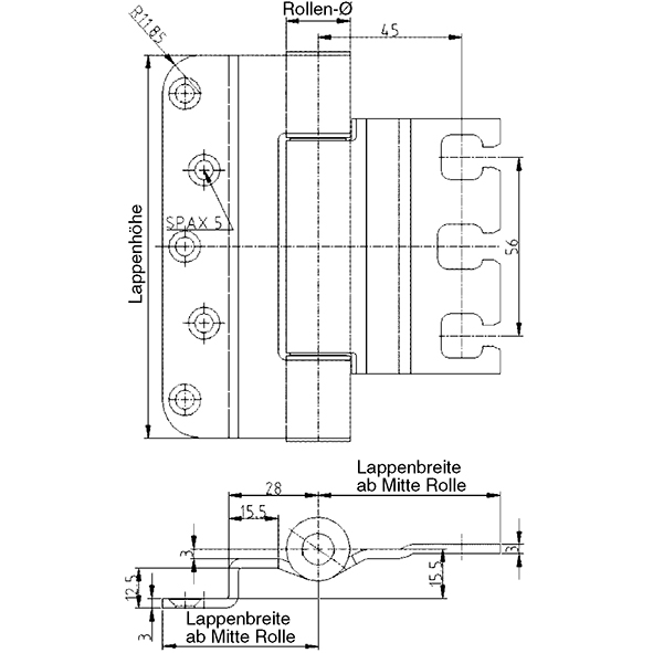 - Lappenbreiten ab Mitte Rolle
