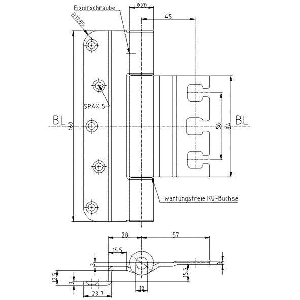 Edelstahl gebürstet, für gefälzte flächenbündig einschlagende Türen, wartungsfrei, mit Stiftsicherung, eingebaut demontierbar, Lappendicke 3 mm, zur Verwendung an Türen in Flucht- und Rettungswegen mit Anforderungen an den Rauch- und Brandschutz, Tragkraft, Lappenhöhe 120 mm, bei 2 Band ca. 100 Kilo, Tragkraft, Lappenhöhe 160 mm, bei 2 Band ca. 120 Kilo