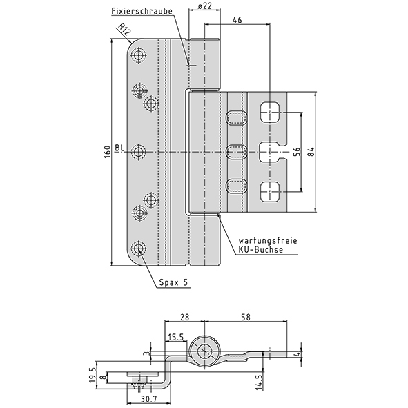 Edelstahl gebürstet, für gefälzte, flächenbündig einschlagende Türen mit durchlaufender Dichtung, wartungsfrei, mit Stiftsicherung, eingebaut demontierbar, Lappendicke 4 mm, Tragkraft bei 2 Band ca. 160 Kilo