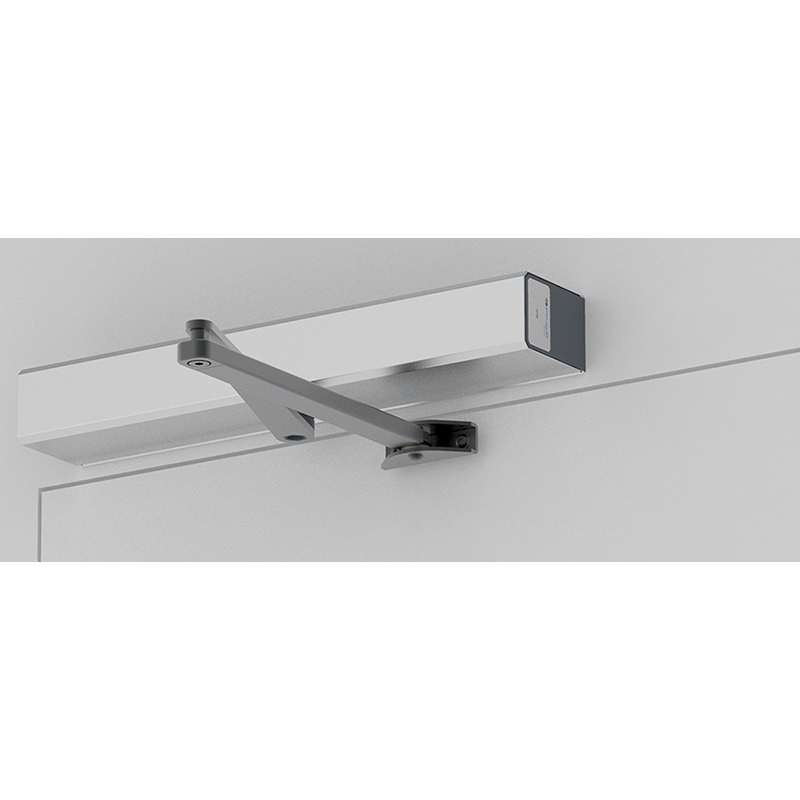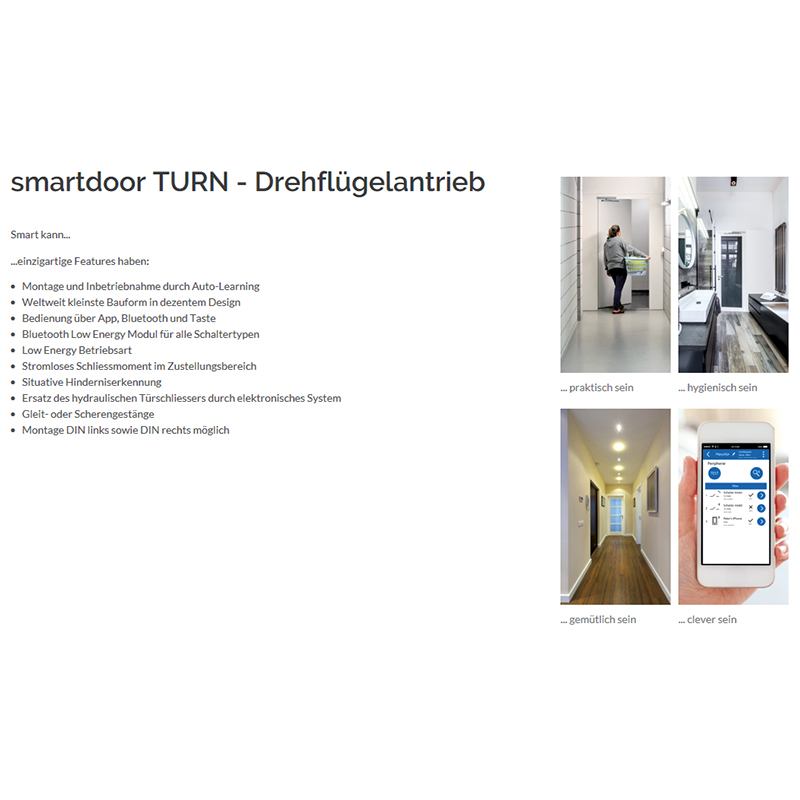 der Drehflügelantrieb Smartdoor Turn T100 ist weltweit die kleinste Bauform im dezenten Design in Oberfläche aluminium / anthrazit,