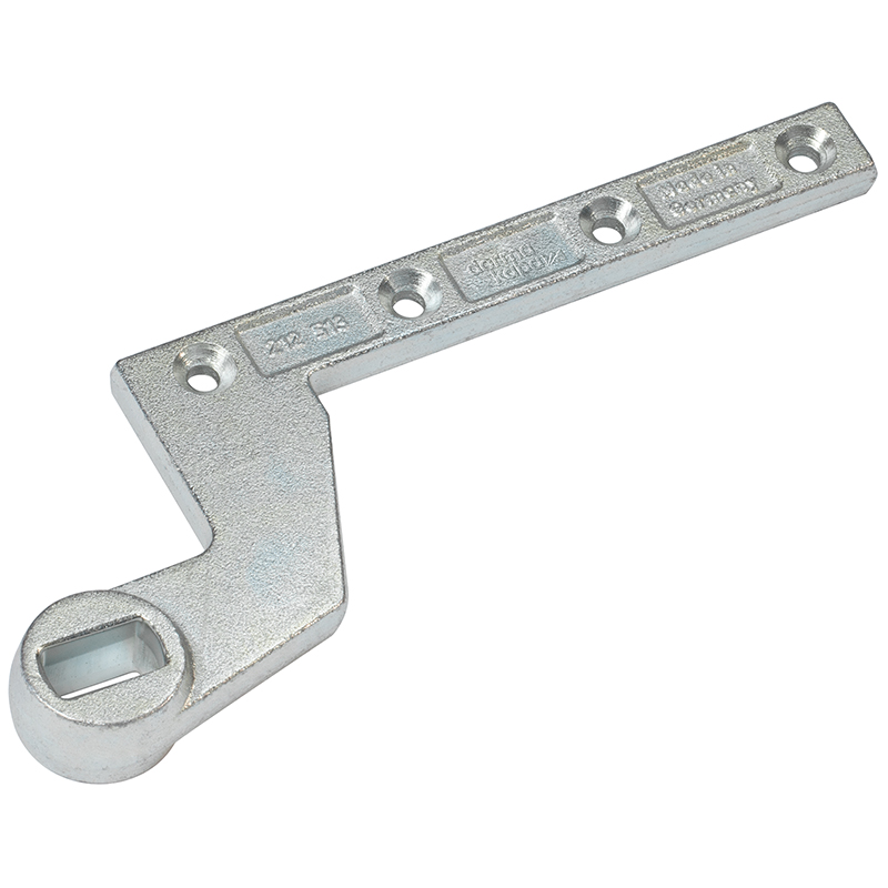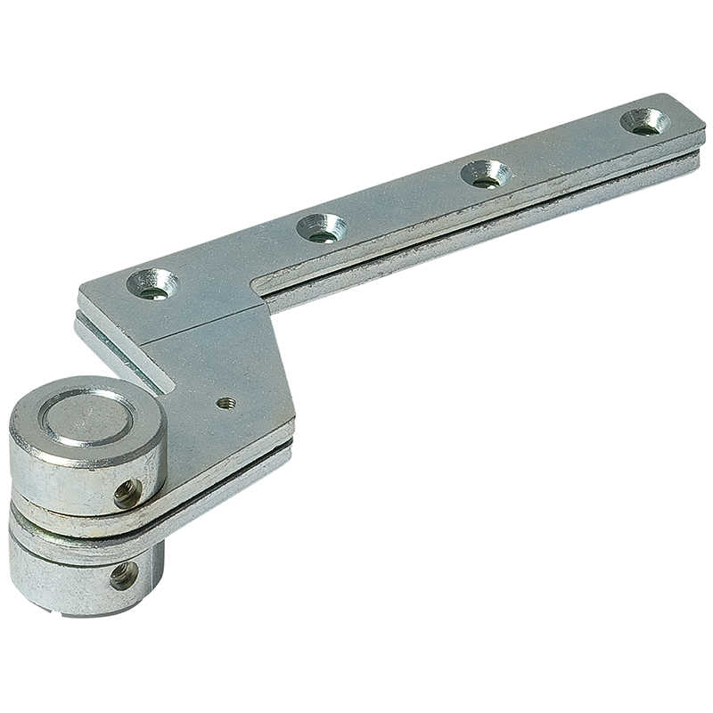 Türhebel Stahl senkgeschmiedet, verzinkt, Zapfenband Stahl verzinkt mit Exzenterbolzen und Exzenterbüchse aus Kunststoff, mit Verstellmöglichkeit im eingebauten Zustand ± 2 mm, Ausführung für Pendeltüren mit Oberteil mit verstellbarem Bolzen, Unterteil mit Nadellager und oberer Abdeckplatte Edelstahl matt