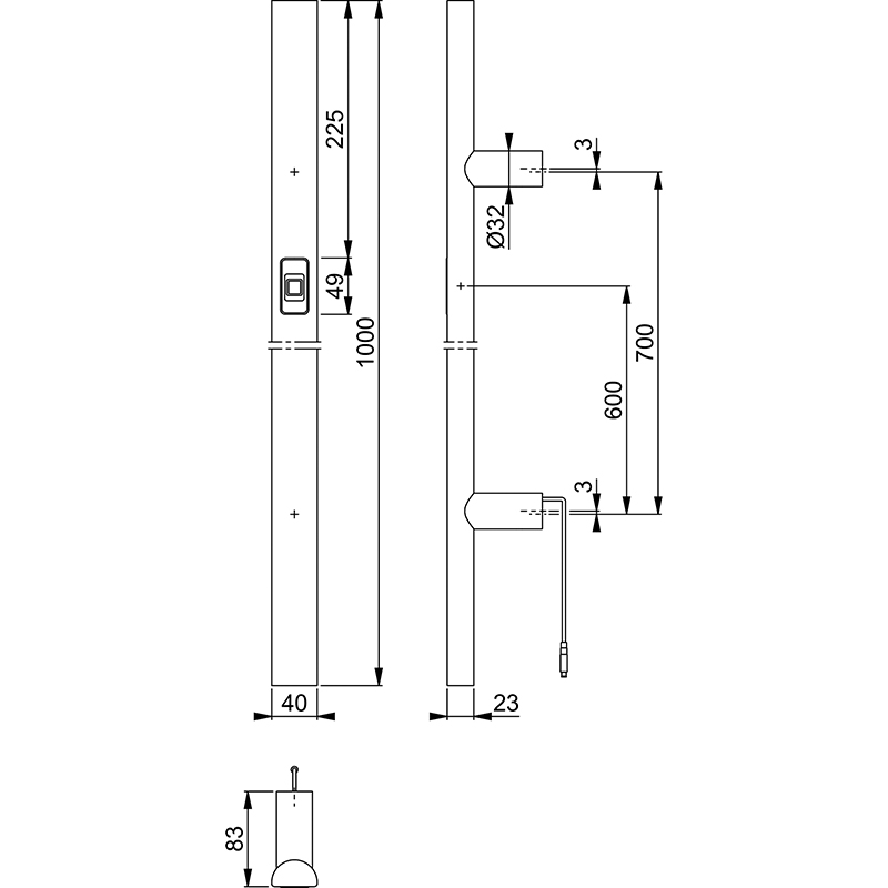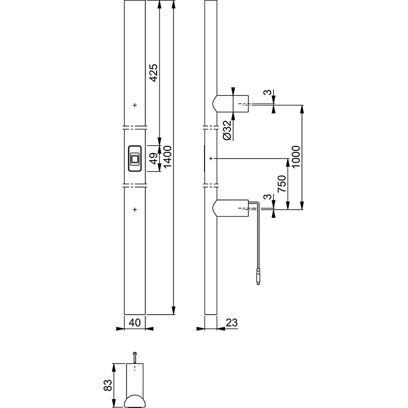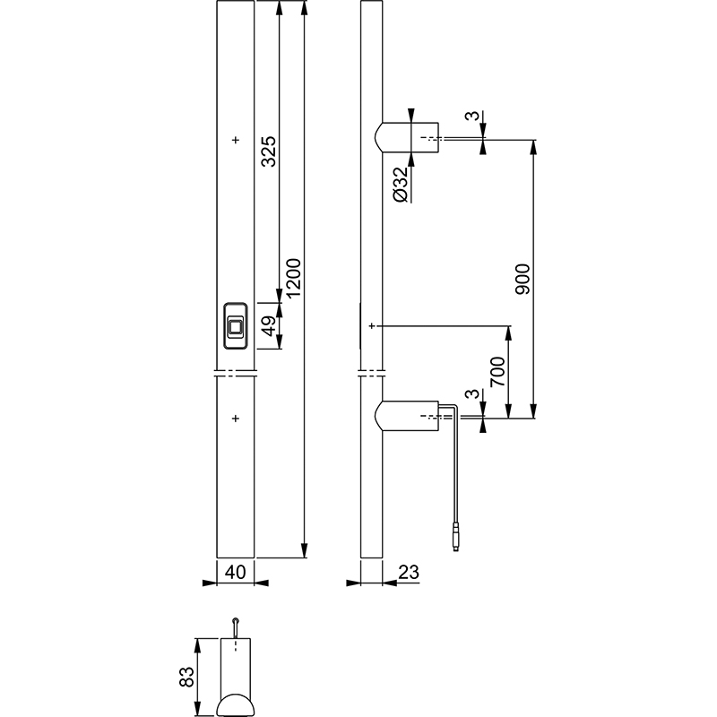 Edelstahl, D-förmigem Querschnitt mit Fingerscanner, Stützen: rund, gerade, für einseitige Befestigung an Holz-, Aluminium- und Kunststofftüren, Türblattstärke mind. 56 mm