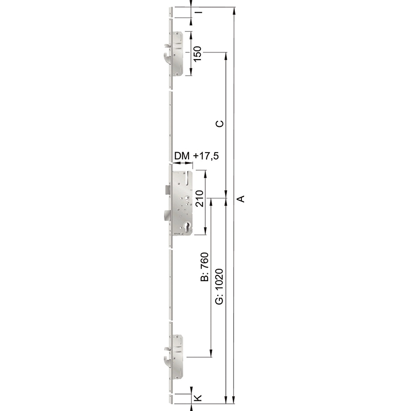 Version à vantail pour bois et plastique, pour l'utilisation dans des issues de secours à un vantail, fonction anti-panique B ou E, boîtier de serrure principale avec pêne demi-tour en acier décalé de 2 mm et verrou à 2 tours, saillie 20 mm, boîtier de serrure secondaire avec pêne rond en acier et verrou pivotant, norme EN 179, EN 1125