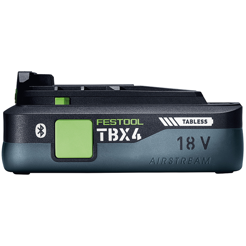 La batterie TBX performante avec technologie Tabless est le partenaire idéal pour les applications puissantes - tout en étant légère et facile à manipuler. Les cellules Tabless le rendent possible : un développement de chaleur moindre, des durées de fonctionnement plus longues et des temps de charge plus rapides. Grâce à la technologie AIRSTREAM, le chargeur rapide AIRSTREAM SCA 16 refroidit activement le bloc d'accumulateurs avant et pendant le processus de charge et le rend prêt à l'emploi extrêmement rapidement. Le flux d'énergie optimisé des batteries Tabless t'apporte une portion supplémentaire de puissance et assure une plus grande durée de vie du pack de batteries. Équipé de Bluetooth, il démarre automatiquement un aspirateur couplé lors de la mise en marche de l'outil sans fil - et offre, en combinaison avec l'app Festool, des informations détaillées sur l'état de charge, la température ou les cycles de charge.