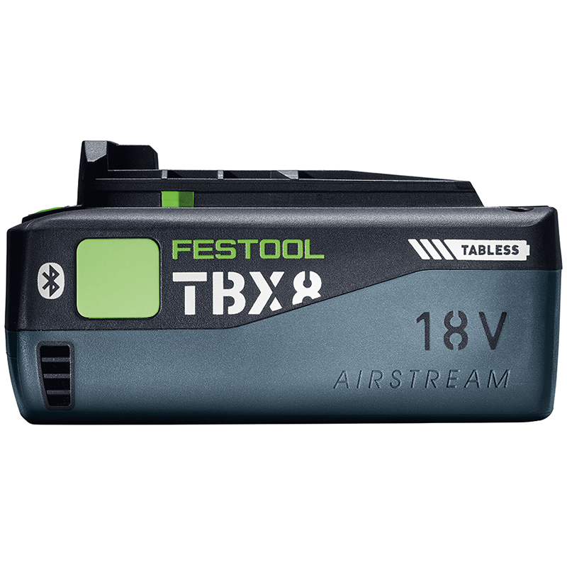 La batterie TBX performante avec technologie Tabless est le partenaire idéal pour les applications puissantes - tout en étant légère et facile à manipuler. Les cellules Tabless le rendent possible : un développement de chaleur moindre, des durées de fonctionnement plus longues et des temps de charge plus rapides. Grâce à la technologie AIRSTREAM, le chargeur rapide AIRSTREAM SCA 16 refroidit activement le bloc d'accumulateurs avant et pendant le processus de charge et le rend prêt à l'emploi extrêmement rapidement. Le flux d'énergie optimisé des batteries Tabless t'apporte une portion supplémentaire de puissance et assure une plus grande durée de vie du pack de batteries. Équipé de Bluetooth, il démarre automatiquement un aspirateur couplé lors de la mise en marche de l'outil sans fil - et offre, en combinaison avec l'app Festool, des informations détaillées sur l'état de charge, la température ou les cycles de charge.