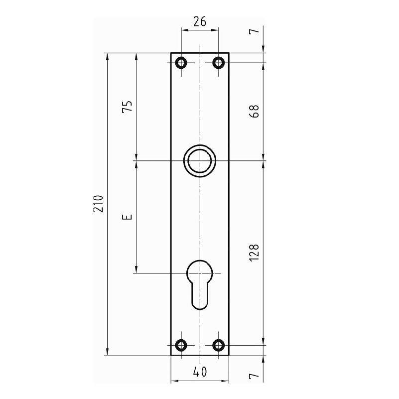 Inox mat, avec guidage de poignée tiré vers l'intérieur 16 mm, centre du trou de vis supérieur jusqu'au centre du guidage de poignée 71 mm,