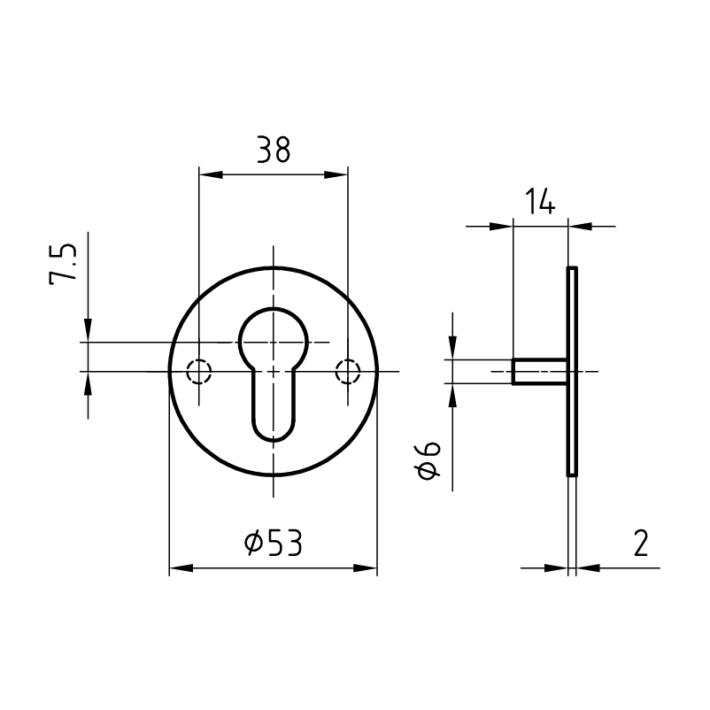 rosace extérieure 2 mm avec 2 raccords filetés M4 x 14 mm,