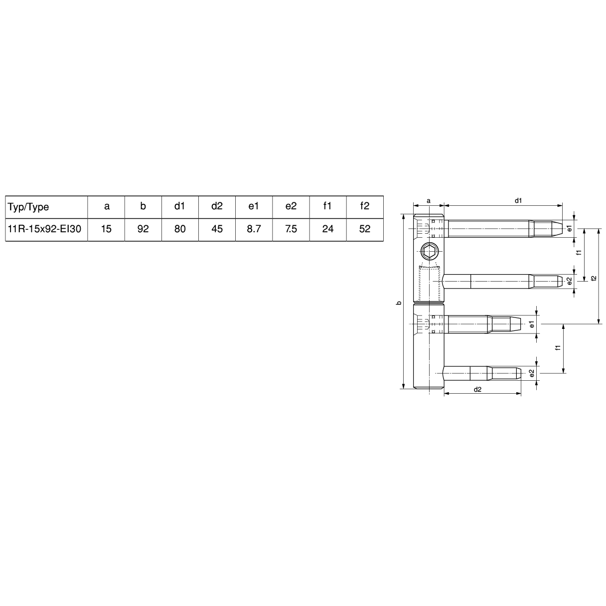 pour portes bois à rainure, avec boulons à filetage conique