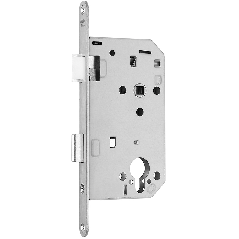 Serrure à mortaiser GLUTZ Swiss 1001, avec têtière ronde 18 x 230 mm, inox mat