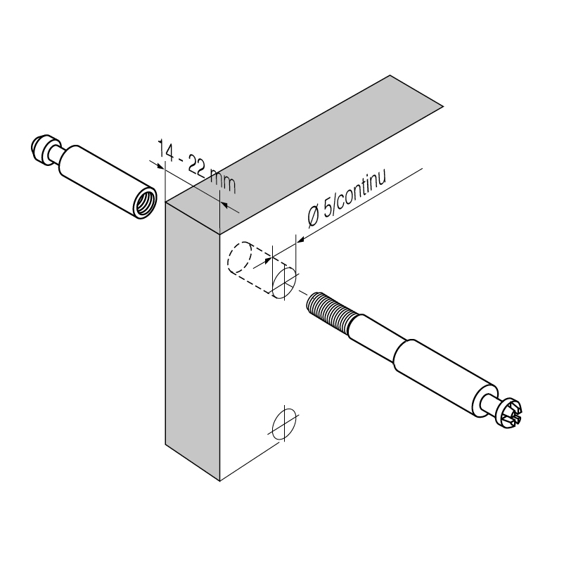 Ø 5 mm, 2 pièces, partie douille et partie vis séparées