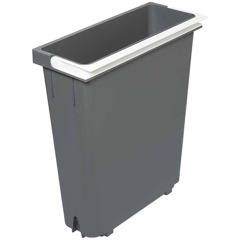 Plastique gris. Le récipient de 12,5 litres avec anse de support est fourni sans couvercle et s'intègre dans les ensembles collecteurs de déchets X-LINE pour les caissons à partir d'une largeur de 550 mm. Le récipient peut être utilisé pour la séparation, la collecte et le stockage de déchets à recycler et d'ustensiles de cuisine.
