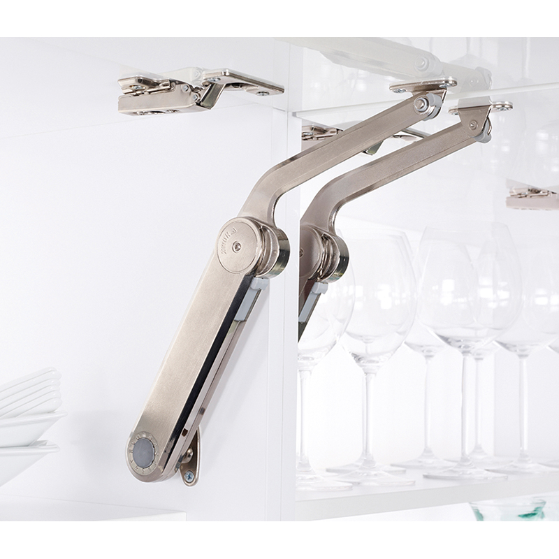 nickelé, pour les façades en bois moyennes à très lourdes ou avec des cadres larges, force du ressort réglable, tenue solide dans n'importe quelle position, gauche et droite peuvent être utilisés, angle d'ouverture 75°, 90° et 110°, avec adaptateur pour façade et paroi latérale, avec technique de montage par clic