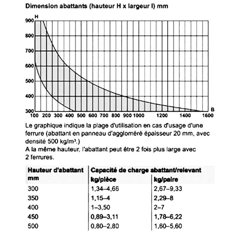 - ≤9,33 kg, pour une application sur les deux faces, respecter le tableau des valeurs indicatives kg