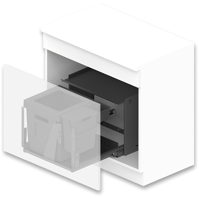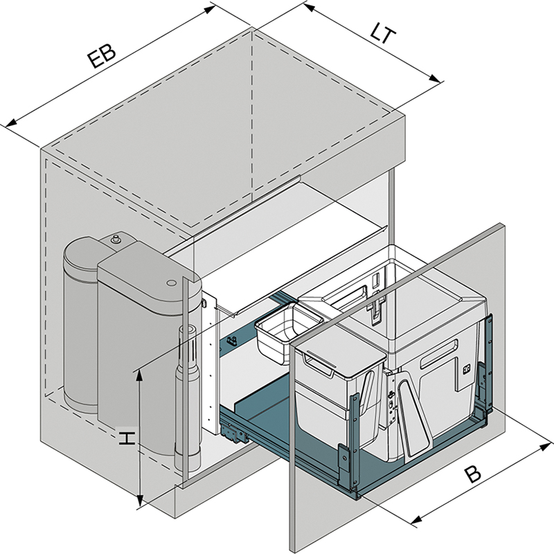 Oeko Complet Aqua L est conçu de telle sorte qu'il peut être installé facilement et sans effort de planification à côté d'un système d'eau bouillante finale comme par exemple Quooker ou un filtre à eau traditionnel dans un élément de 750 - 900, le remplacement d'un cylindre de CO2 est également très simple, les seaux sont largement dimensionnés de sorte que le sac soit vraiment plein, la tablette métallique offre un rangement pratique pour les petits ustensiles, le système de déchets est équipé d'une glissière robuste avec une grande capacité de charge