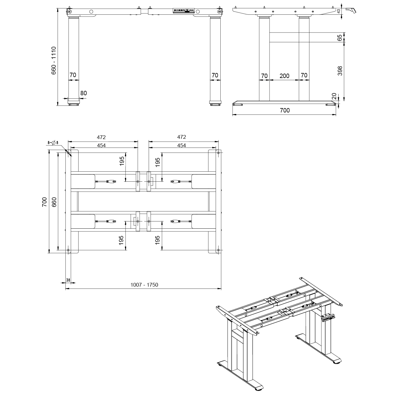 - Largeur du cadre: 1007 - 1750 mm