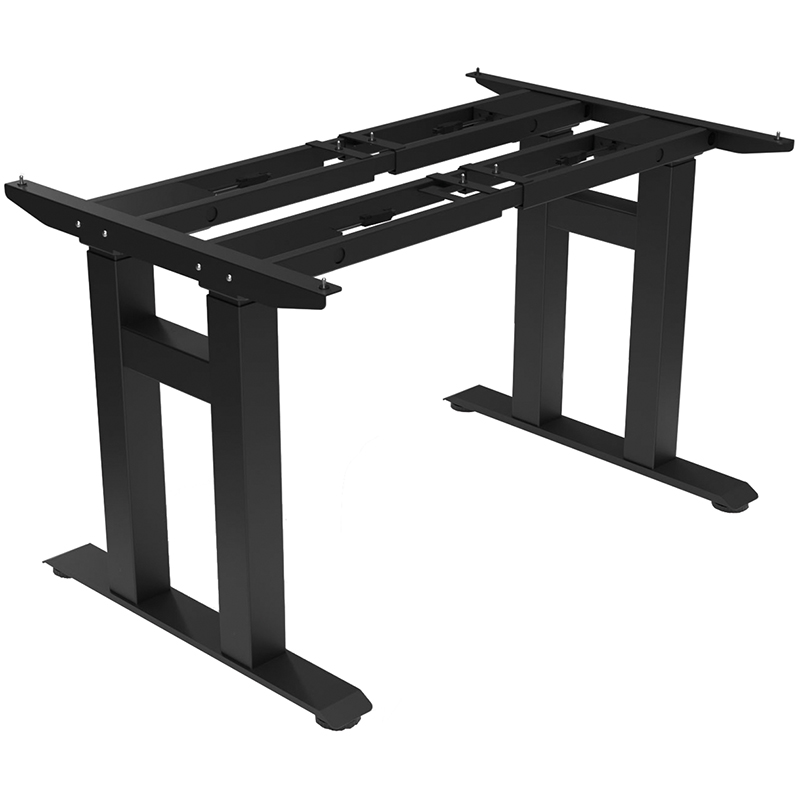 colonne en acier 70 x 70 mm revêtue par poudre avec réglage électrique en continu de la hauteur par quatre moteurs puissants et course à deux niveaux, la protection antichoc intégrée assure une sécurité supplémentaire, la commande manuelle électronique avec affichage LED permet une utilisation simple et dispose d'une fonction de mémoire pour enregistrer jusqu'à trois positions individuelles en hauteur, y compris port USB A avec fonction de charge de 10 W pour recharger confortablement les appareils mobiles, pas de traverse à hauteur des genoux ou du caisson, sans plateau de table