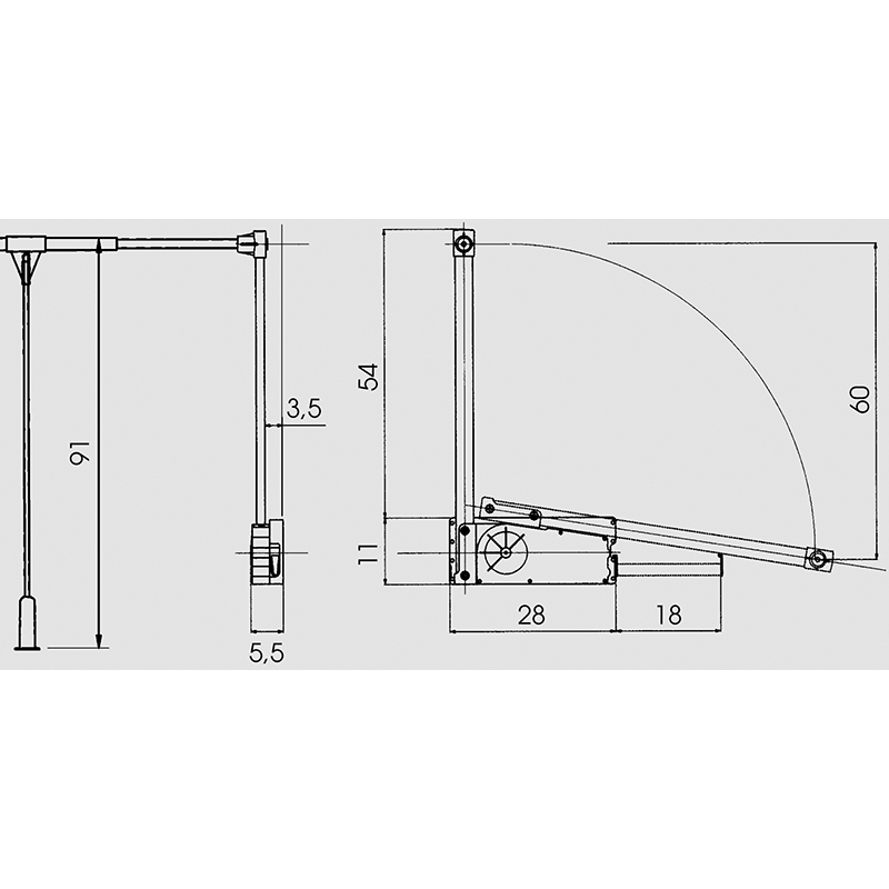 acier chromé, pièces de montage en aluminium gris, support de cintre extensible intégré dans le boîtier, pour fixation au pas de 32 vertical, distance au mur jusqu'à la tringlerie 35 mm, avec barre de commande, instructions de montage et vis de fixation