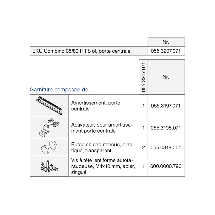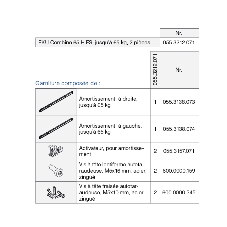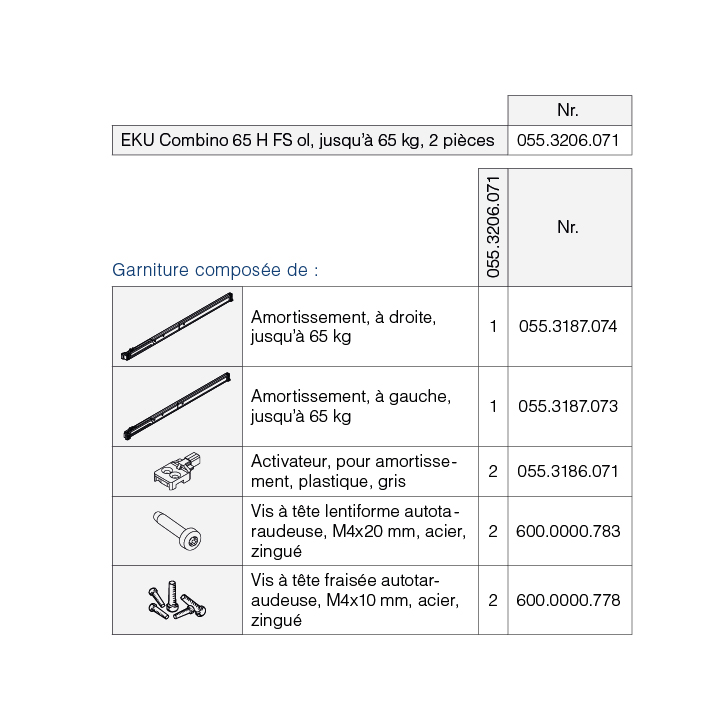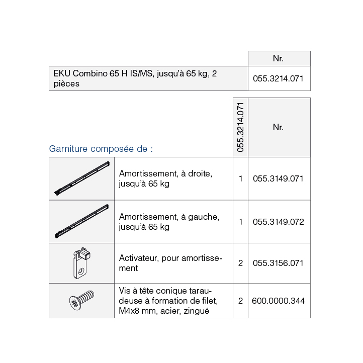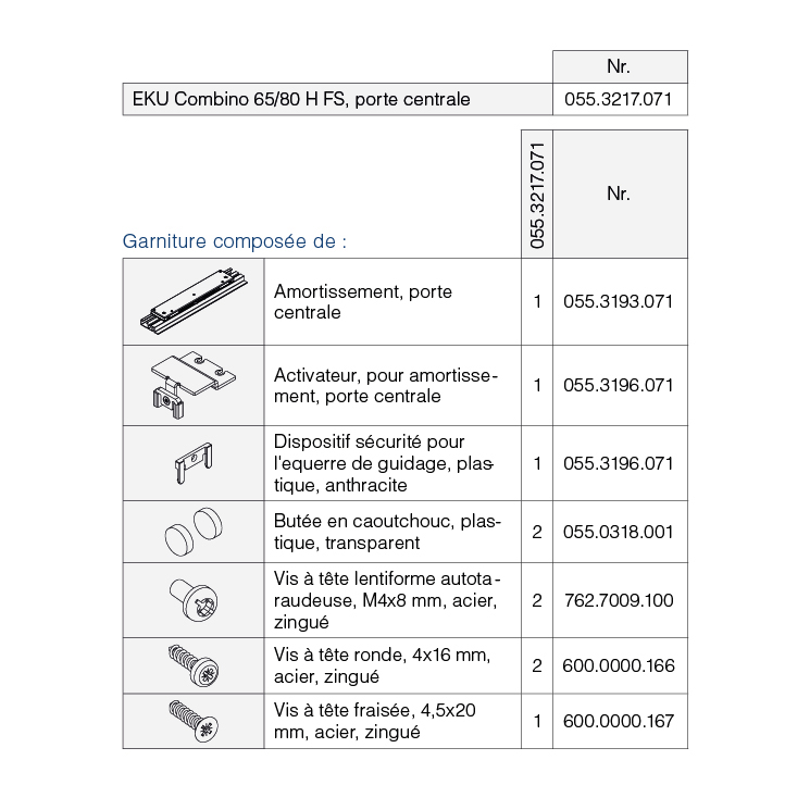 - * Pour l'amortissement dans le sens d'ouverture et de fermeture, commander toujours 2 jeux.