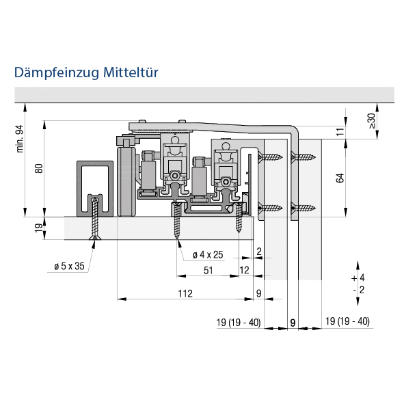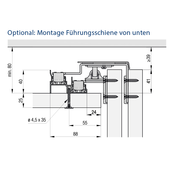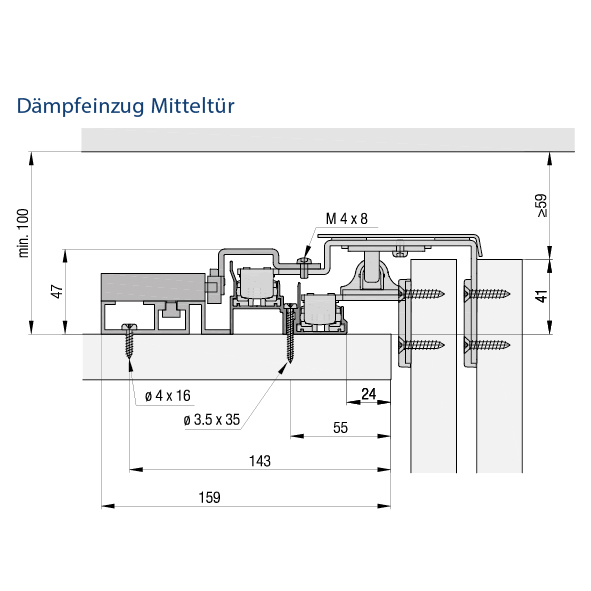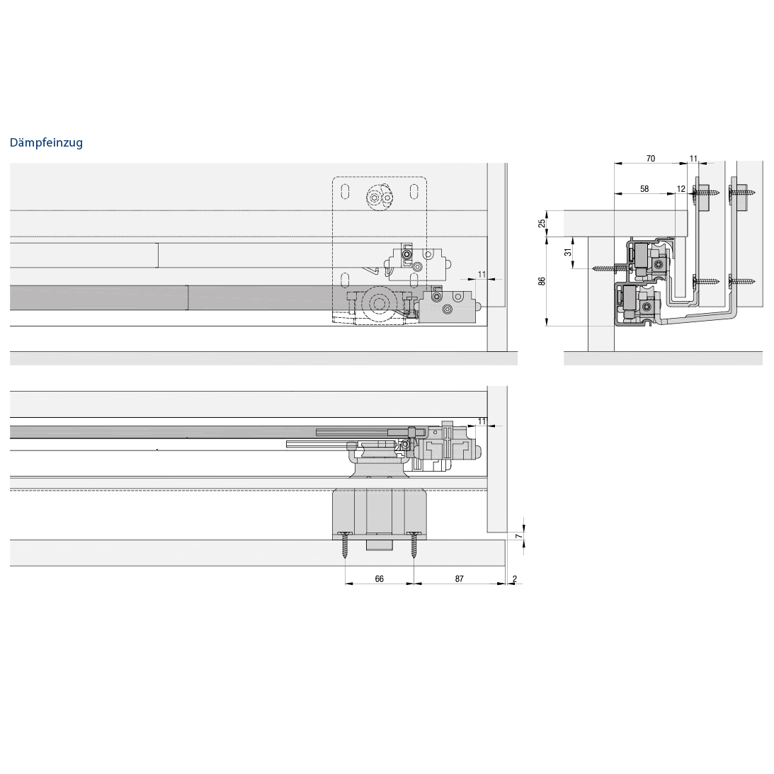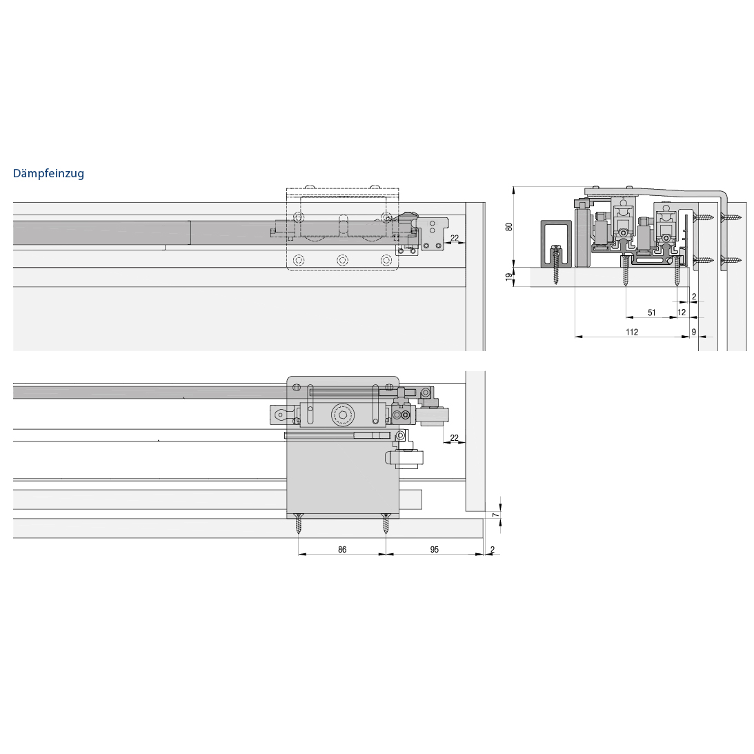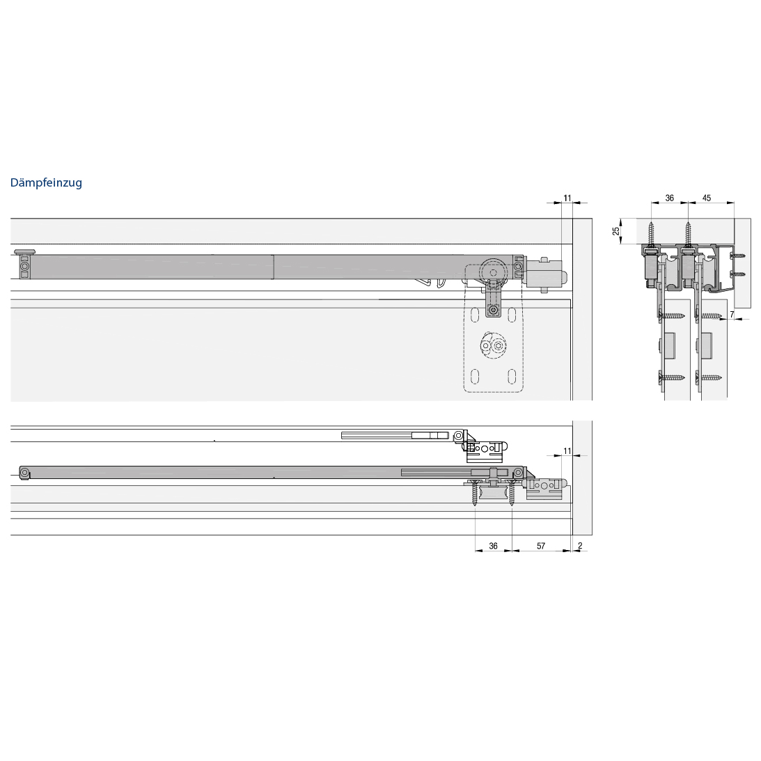- Guide d'amortissement 49.020.30 (recommandé à partir d'un rapport de porte supérieur à 1:3, ne peut être utilisé qu'avec un seul amortisseur).