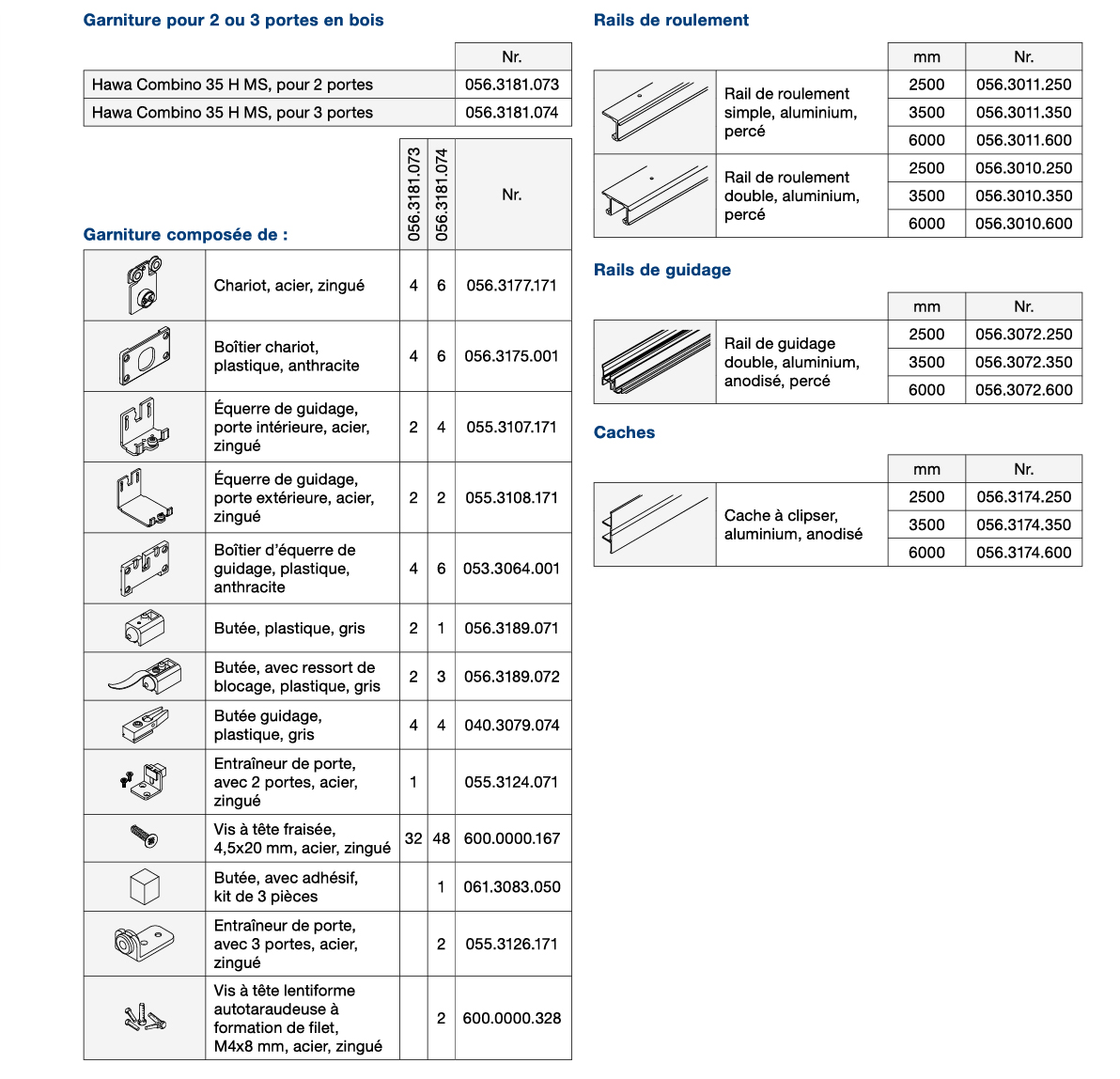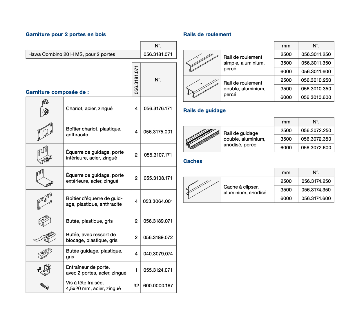 Ferrure de porte coulissante en bois HAWA Combino 20/35 H Mixslide