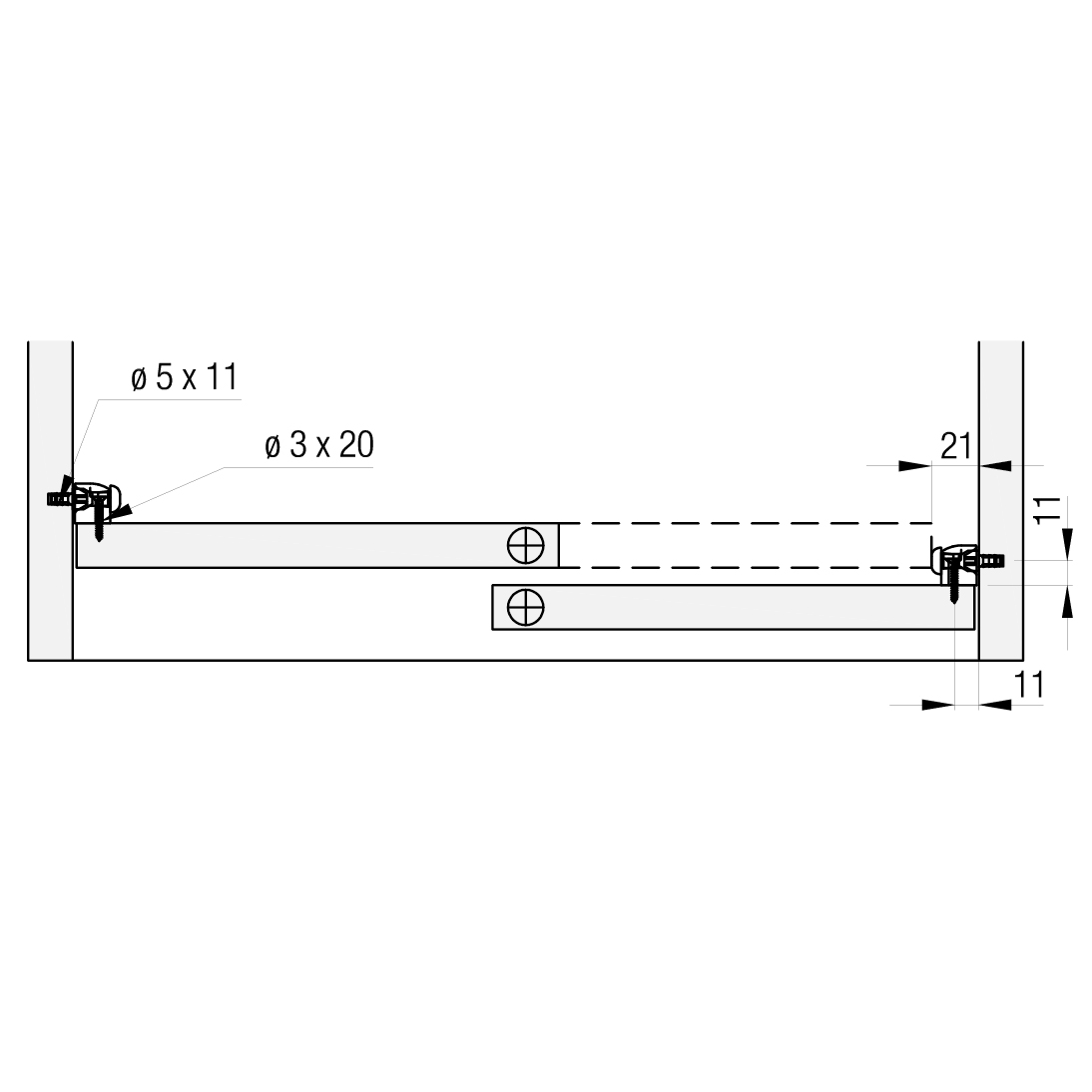 pour portes d'armoires coulissantes en bois jusqu'à 65 kg, épaisseur de porte 25 - 40 mm, dimensions de porte (largeur x hauteur) max. 1400 x 2600 mm, avec réglage en hauteur par excentrique + 4 mm / - 2 mm, technologie d'amortissement raffinée et disposition innovante des composants pour une utilisation très facile, roulement léger et silencieux avec galet Eku Comfort, sans rails de roulement et de guidage, sans amortissement, sans accessoires